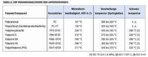 Viele der Einsatzgebiete haben gemeinsam, dass die verwendeten Kunststoffe zum einen die Anforderungen an eine hohe thermische Belastbarkeit erfüllen müssen und zum anderen eine große Farbvielfalt, insbesondere leuchtender Farben, gewährleisten sollen. Denn es bedarf in vielen Fällen einer guten Unterscheidbarkeit, wie beispielweise bei Hochvoltleitungen und Verbindungskomponenten in Hybrid- und Elektroautos, die orangefarben gekennzeichnet werden.